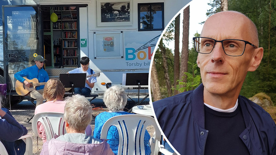 – Där stod bokbussen vid ett av sina stopp. Då slog det mig: Varför inte låta våra elever ha en liten konsert framför bussen?