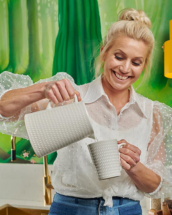 – Och så har jag äntligen skaffat mig en riktig kökslokal, jag älskar att vara där och dra i mina lådor. Ibland åker jag dit bara för att få städa och dra på Orup på högsta volym.