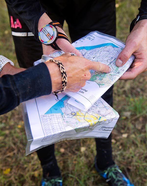 När Sverre Röjgård och Simone Niggli kommer tillbaka står de lätt framåtlutade över kartan och diskuterar olika kontroller, pratar om banans svårare partier. Simone säger att Sverre för det mesta hade ett bra flyt och god framförhållning med en tydlig tanke för nästa kontroll. ”Men du får gärna stanna upp en-två sekunder då och då för att titta efter noga, det är ju ingen tid alls jämfört med den tid som vi irrade runt där.”