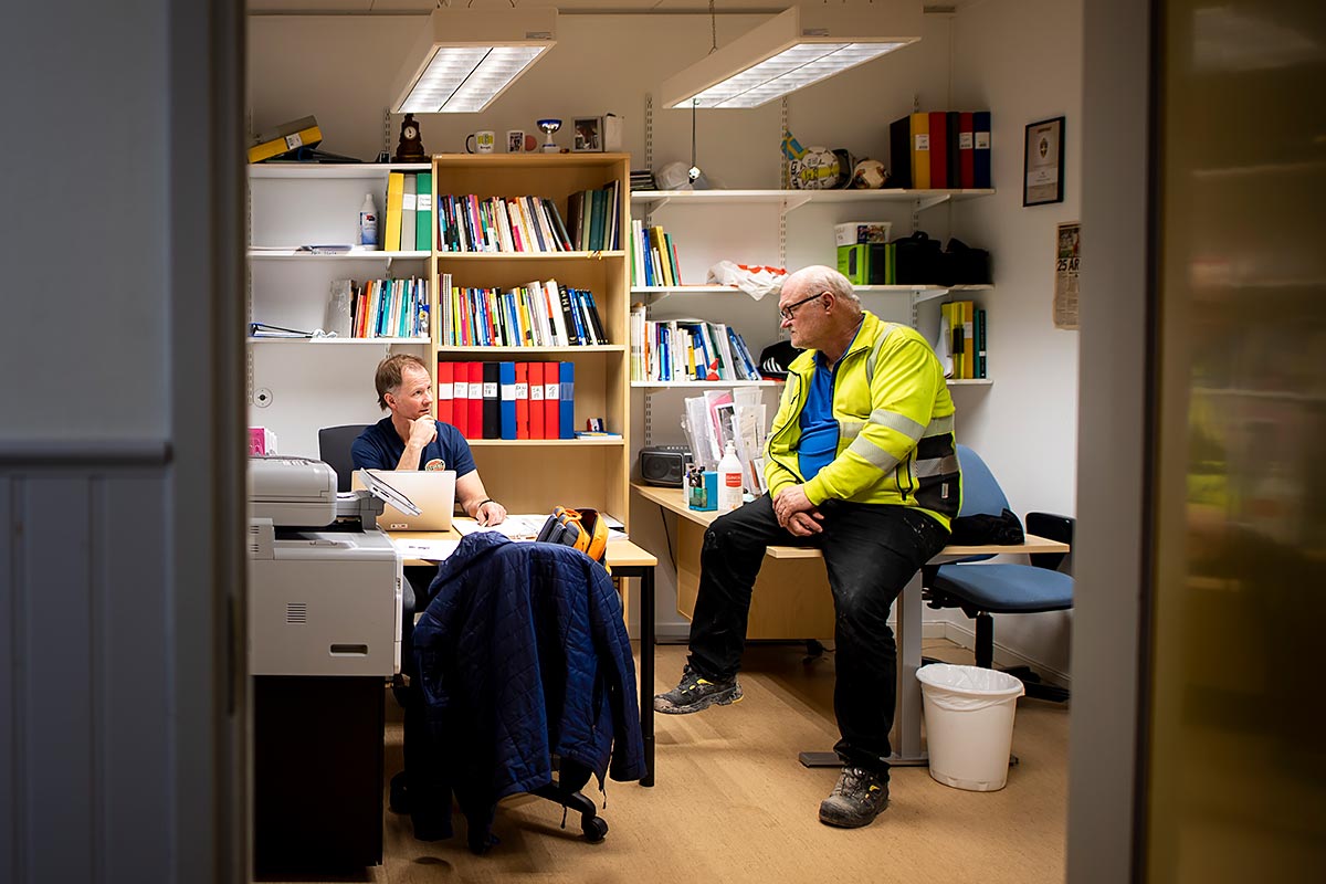 Idrottsläraren Anders Knoph och yrkesläraren Örjan Pedersen arbetar för att eleverna ska nå sina hälsomål och vara förberedda för yrkeslivet. Konditionsövningar görs både i idrottsämnet och under lektionerna i yrkesämnen. Foto: Fredrik Karlsson