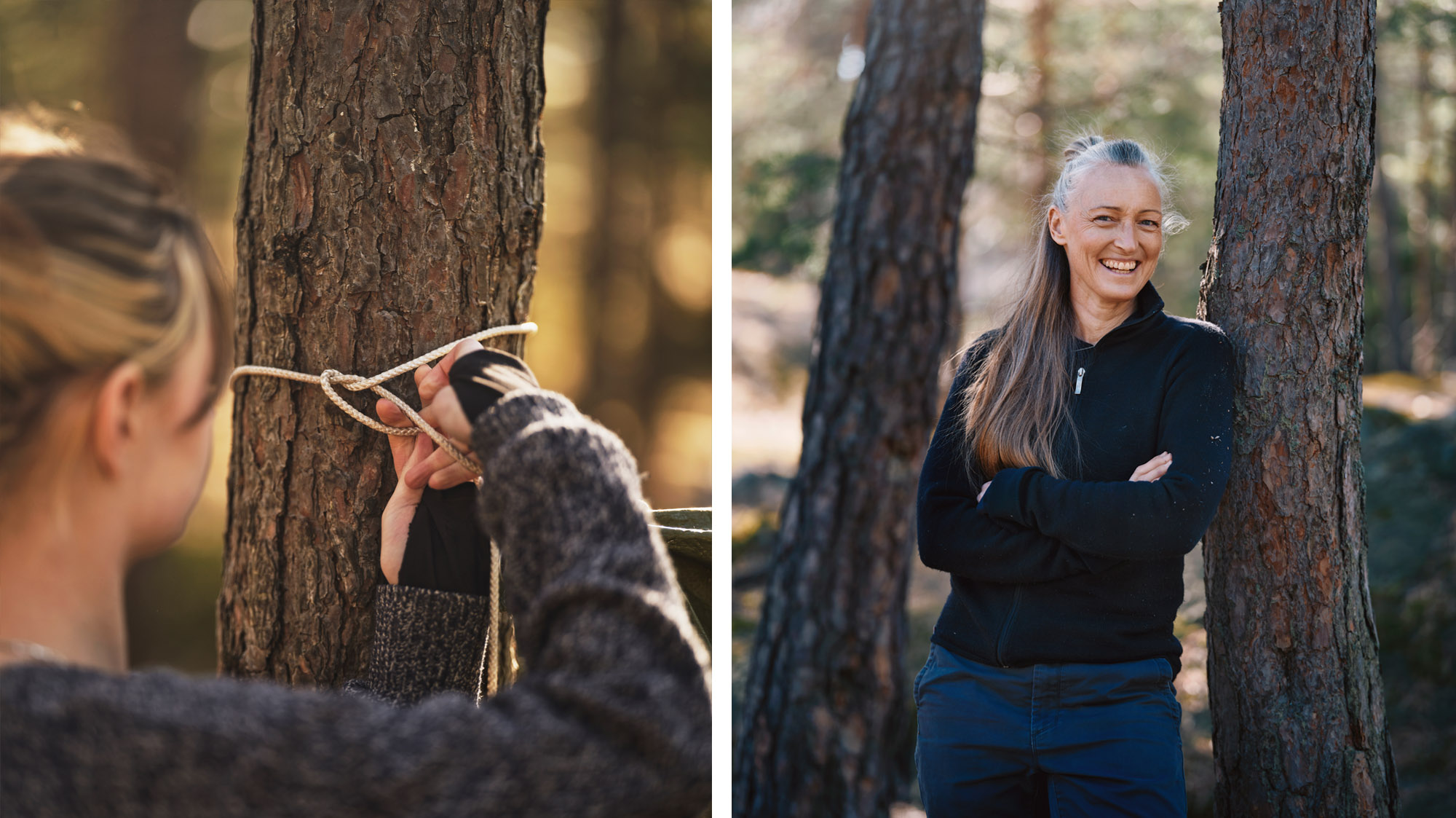 Den här dagen får eleverna användning av de knopar som de lärde sig på förra lektionen. ”Vår kreativitet förbättras när vi går på en stig”, säger Ulrika Westman.