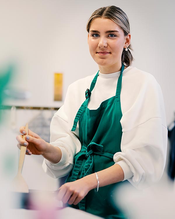 Sonja Lindell gillar att laga mat och har lärt sig att tvätta i ämnet hem- och konsumentkunskap. Det är bra kunskap att ha med sig i livet, säger hon. Foto: Oskar Omne