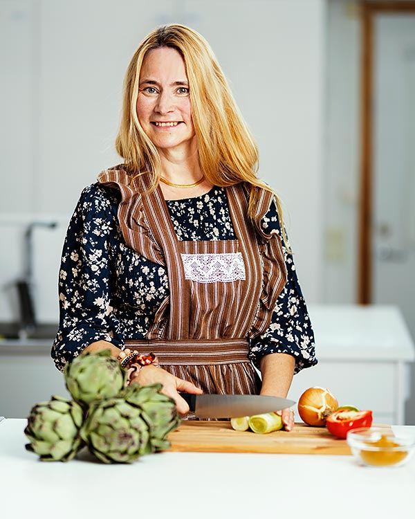 – Först ska ni massera degen och sedan är den klar för ett spa. Det är kärlek, säger hon och möts av skratt i köket.