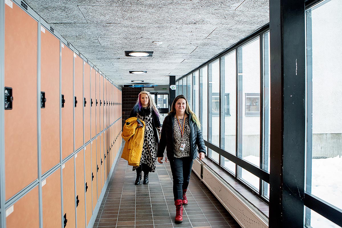 En viktig del av Sara Guldbrand Sandgrens (främst) och Pernilla Persson Båsks arbete är att röra sig runt på introduktionsprogrammet för att visa att de finns. Foto: Therése Ny