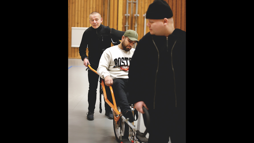 Det krävs två personer för att hantera joletten och den har ingen egen balans utan allt hänger på ledsagarna. De andra eleverna i klassen får också lära sig att hantera joletten, som är vanlig inom parasport, vilket de har stor användning av i sina framtida yrken som fritidsledare.”