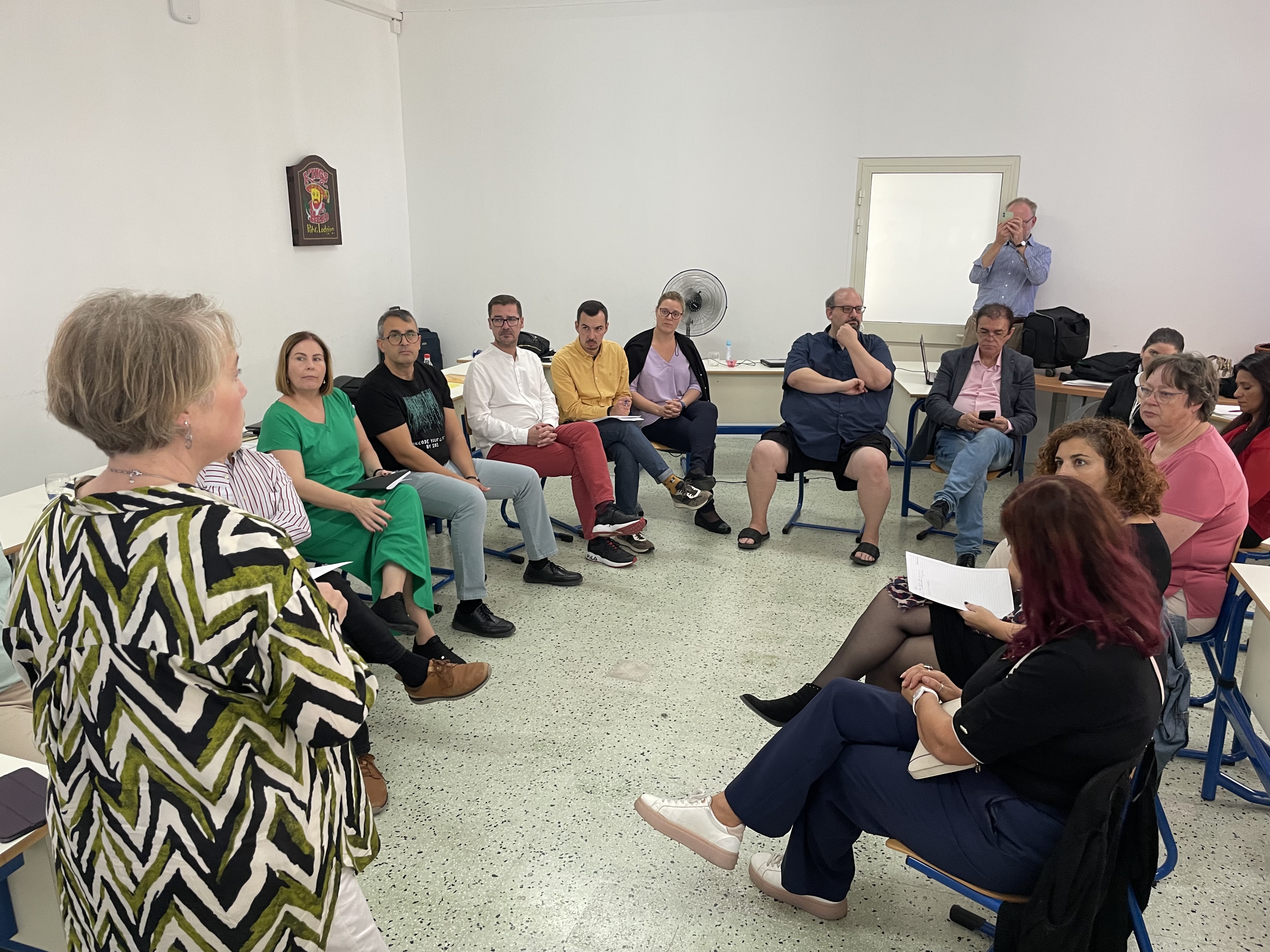 Inkluderingsprojektet inleddes med samtal om skola, undervisning och professionell utveckling i ett klassrum i en skola på Malta.