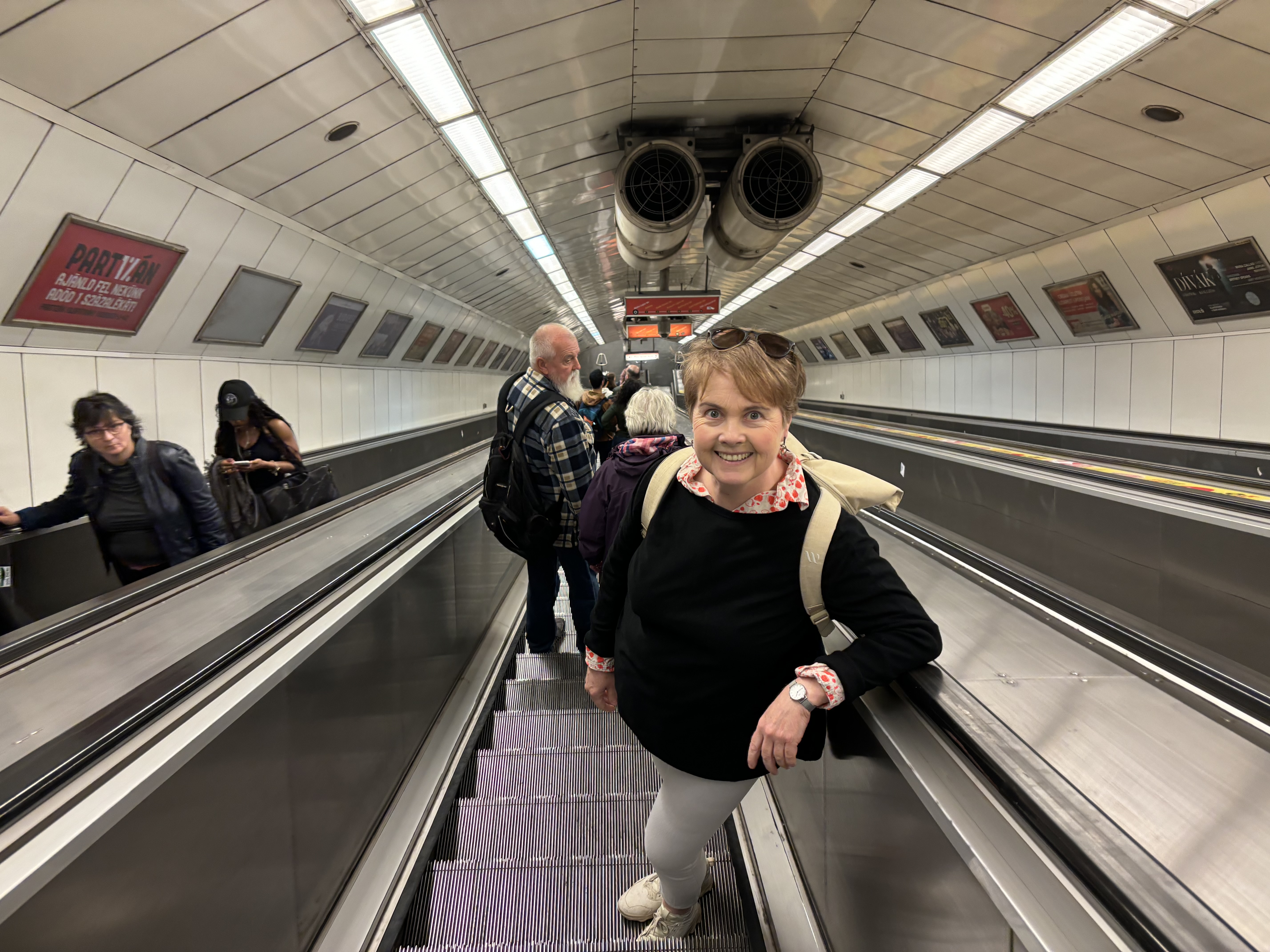 Helena Wallberg i tunnelbanan i Budapest under en av projektresorna.
