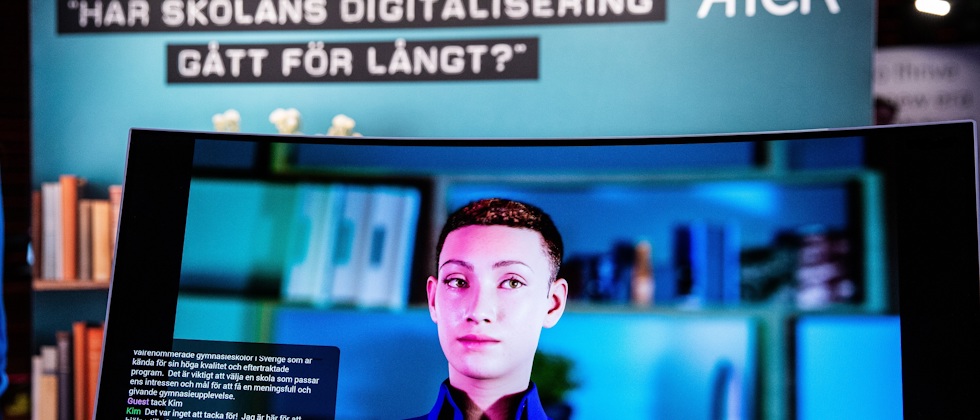 Digitalisering ”Hej, jag heter Kim och är studie- och yrkesvägledare.” Just nu turnerar en AI-SYV på it-mässor i Sverige för att presentera sig.