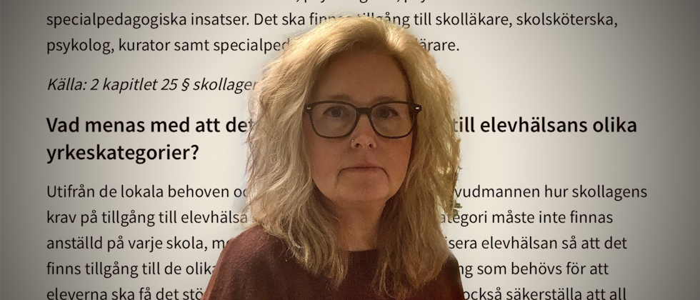 Tema elevhälsa Riksföreningen för Skolsköterskor ger regeringens elevhälsoutredning tummen ner. Ordförande Mia Göransdotter Hammar förklarar varför.