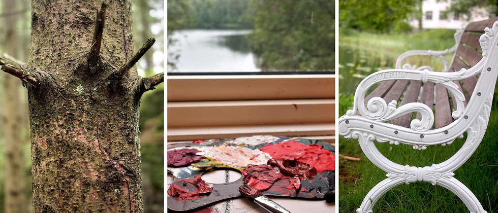 Folkhögskollärarna Bänken, ateljén och trädgården är några av läraren Anna Aspegrens favoritplatser vid Helsjöns folkhögskola. Se hennes bilder här!