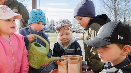 Hållbarhet Eleverna på Hemsjö fritidshem sår, skördar och smakar sina egna grödor. Grönsakerna äter de till lunch och mellis, eller tillagar själva på fritidshemmet.