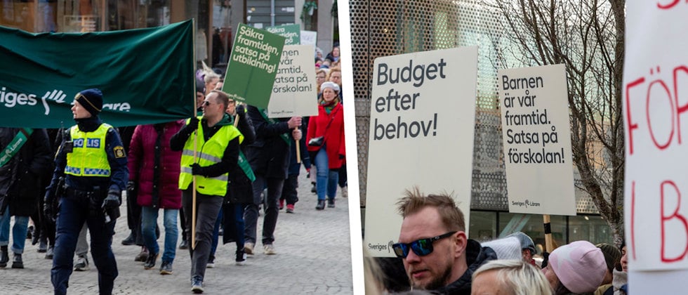 Nedskärningar 500 personer demonstrerade för lärarna i Göteborg.