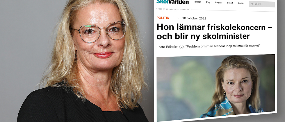 Politik I en intervju med Skolvärlden kommenterar den nya skolministern Lotta Edholm sin inblandning i friskolekoncernen Tellusgruppen.
