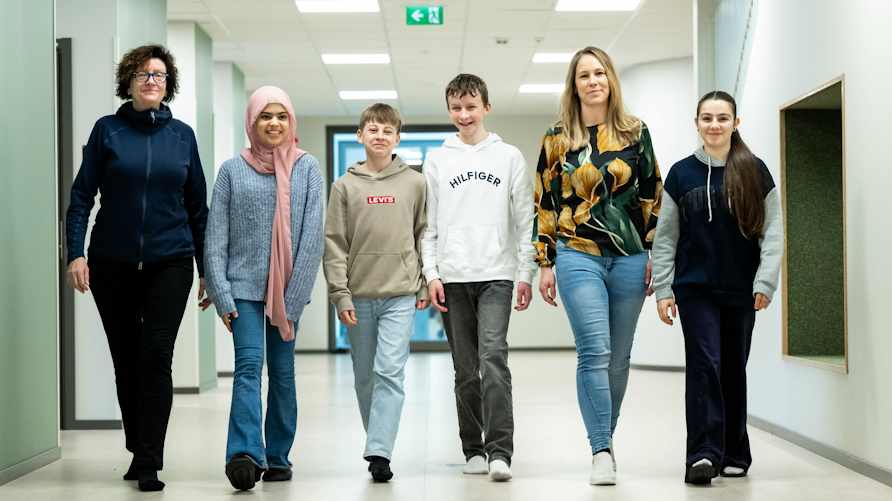 Näktergalen-projektet på Fredricelundsskolan. Petra Johansson och Jennie Schüssleder med eleverna Lin, Vincent, Lucas och Nour. Foto: Fredrik Karlsson