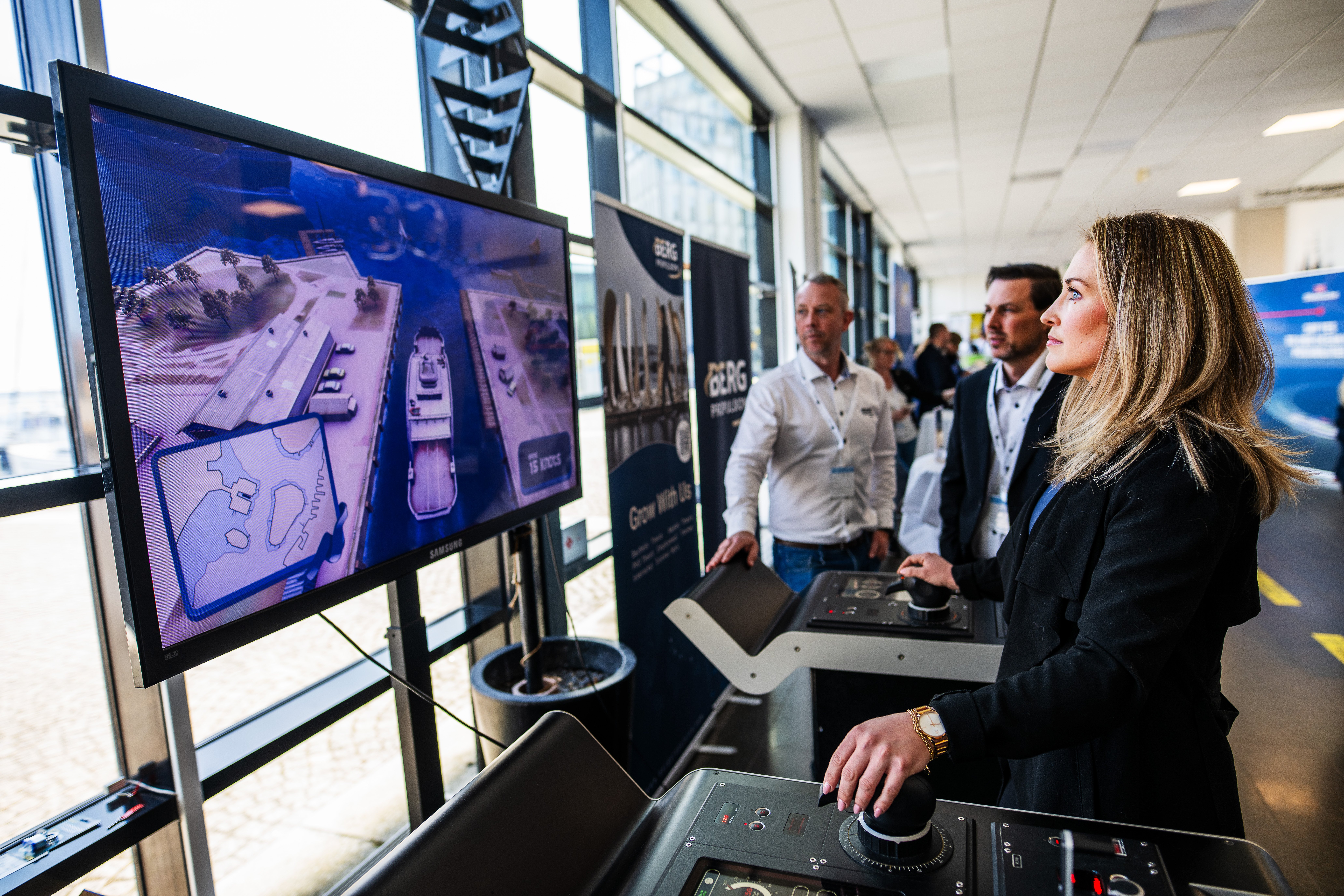 Det var inte bara föreläsningar under dagen. Det fanns ett praktiskt moment också. Deltagarna fick testa att köra fartyg i en simulator, vilket visade sig vara svårare än de trodde.