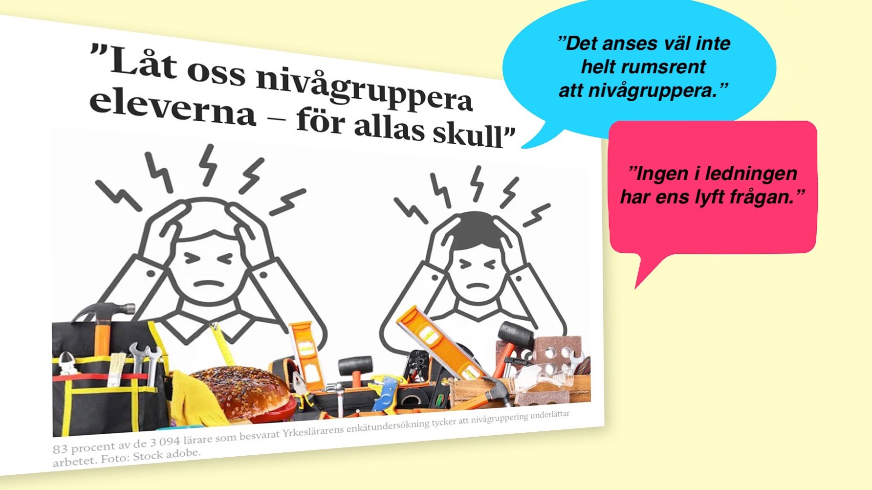 Granskning Här beskriver tolv lärare varför de vill se nivågrupperingar av elever. Citaten är hämtade ur Yrkeslärarens enkät som besvarats av drygt 3 000 lärare.