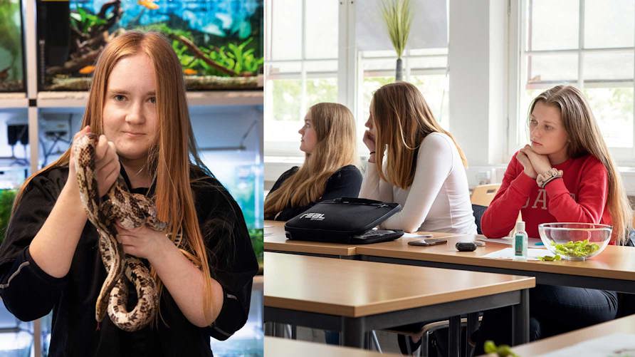 – Jag vill lära mig mer om hur man skyddar vilda djur. Och jag gillar ormar, säger hon när vi gått bort till skolans eget terrarium där hon låter majsormen slingra sig runt kroppen inför fotografen.