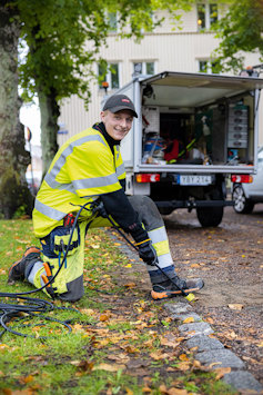 Gabriel Haglund var själv elev för tre år sedan. I dag är han anställd av Alingsås energi och tycker att installationen av ”Lights in Alingsås” är en bra merit att ha på sitt cv.