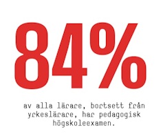 För 30 år sedan hade inget yrkesprogram mindre än 80 procent behöriga lärare. I dag har 59 procent av yrkeslärarna pedagogisk högskoleexamen. Motsvarande siffra bland övriga lärare är 84 procent. I nuläget finns inga krav på lärarlegitimation för yrkeslärare.