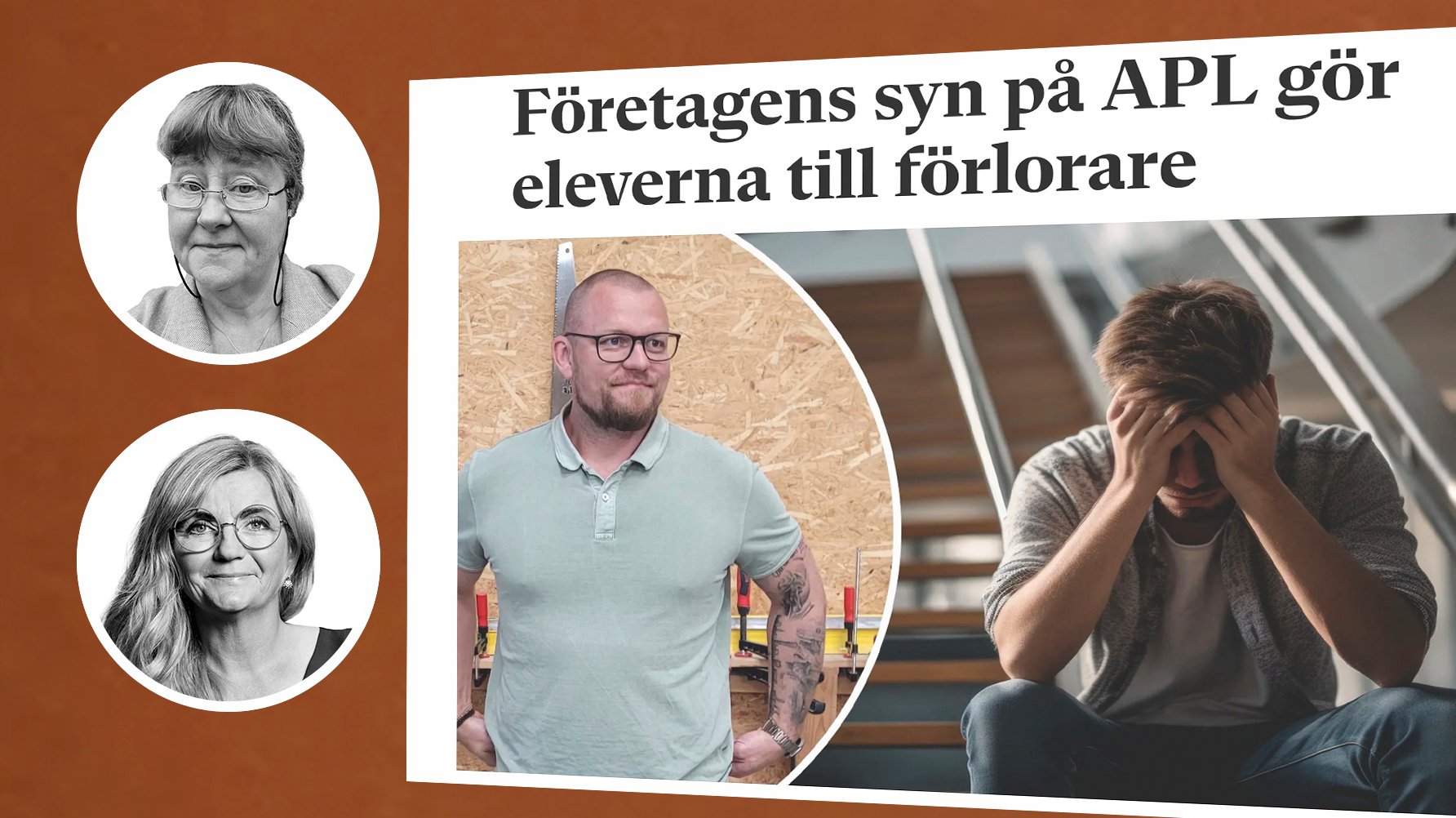 Louise Kullander, överst på bilden, berättar hur svårt det är att få tag på APL-platser. Längst ned Eva Lönn, undervisningsråd på Skolverket. Foto: Privat.