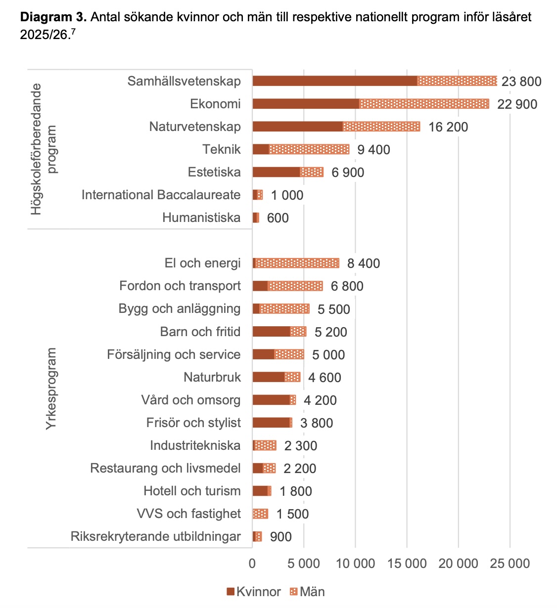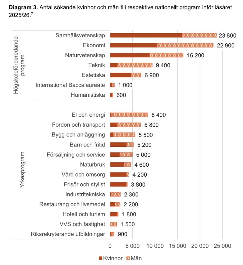 Samtidigt går utvecklingen för vissa utbildningar hand i hand med arbetsmarknadens signaler. Ekonomiprogrammet, bygg- och anläggningsprogrammet och el- och energiprogrammet är exempel där söktrycket följer rekommendationerna.