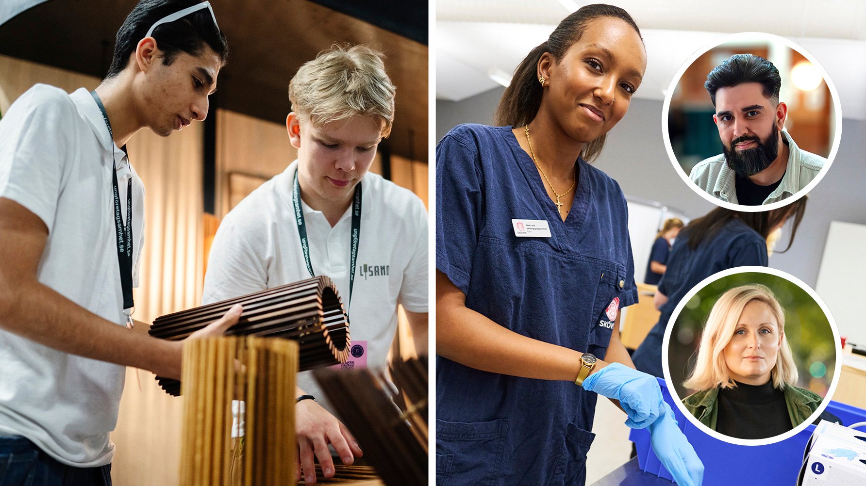 I år är det 16 112 elever inom yrkesprogram som driver UF-företag, berättar Tove Jarl, vd för Ung Företagsamhet. Längst upp: yrkesläraren säger Sanjay Punj.
