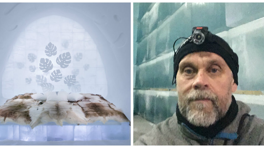 Yrkeslärararen Jonas Anderstedt är på Ishotellet (Icehotel) med två elever från skolan hemma i Norrköping.