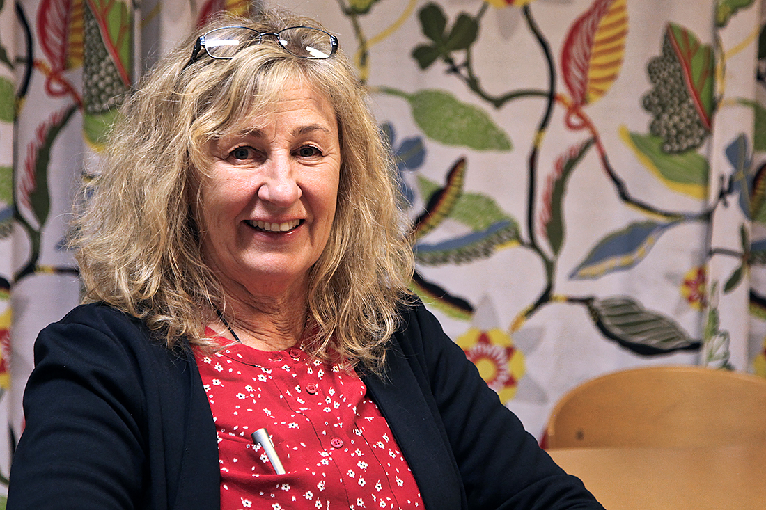 Eva-Lena Drwiega har jobbat som vård- och omsorgslärare i tjugo år och minns tidigare omgörningar av programmet. Foto: Kristin Karlsson