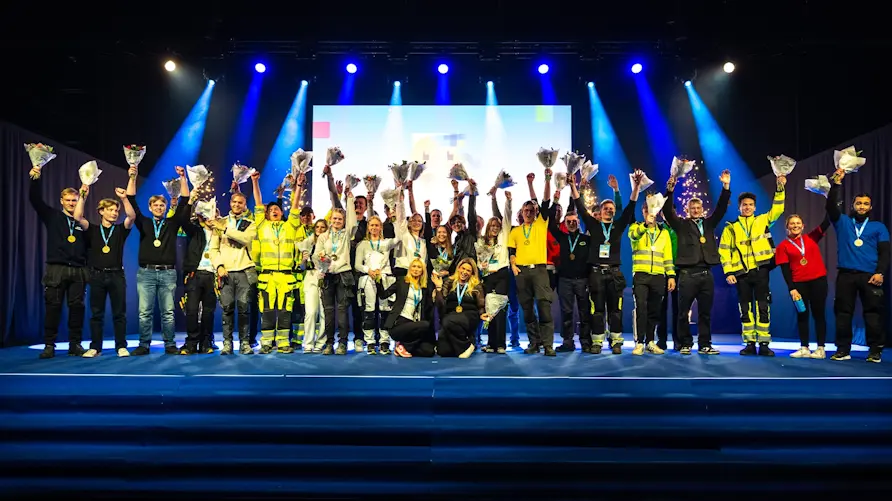 Totalt tävlades det i 32 yrken under Yrkes-SM. Här är glada guldmedaljörer. Foto: Viktor Fremling, WorldSkills Sweden /
