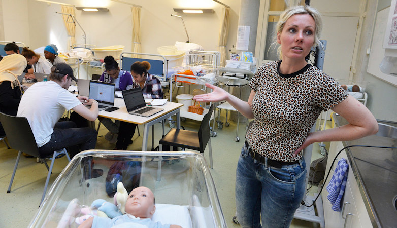 När vårdläraren Sanne van der Meer berättar att nederländska yrkesgymnasier skickar sina elever på praktik strax efter första skoldagen krockar det med Ville Peltomäkis invanda perspektiv. Hemma i Malmö vill han att eleverna först ska ha lärt sig tillräckligt mycket i skolbänken för att kunna göra lite nytta när de inleder praktiken.