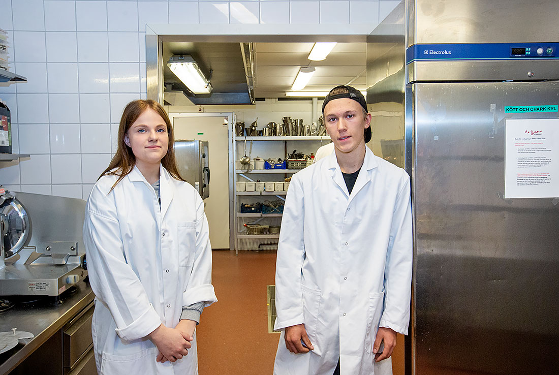 Emma Backlund och Oliver Sundström tror att de kan lära sig mer när de har yrkesämnen och andra ämnen integrerat. Foto: Magnus Andersson